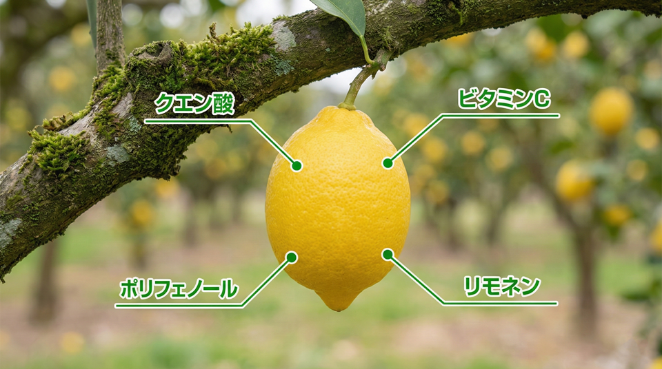 エリオシトリン(ポリフェノール): レモンの皮や白皮(アルベド)に多く含まれ、強い抗酸化作用があると言われています。